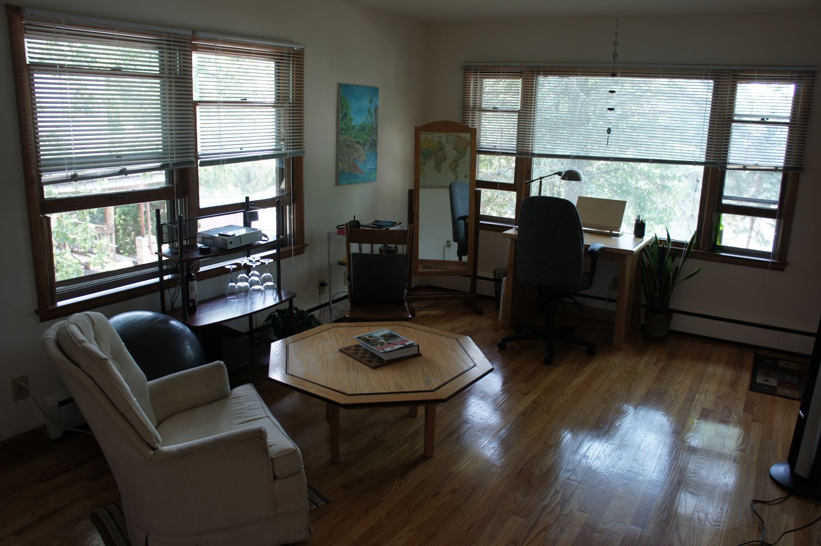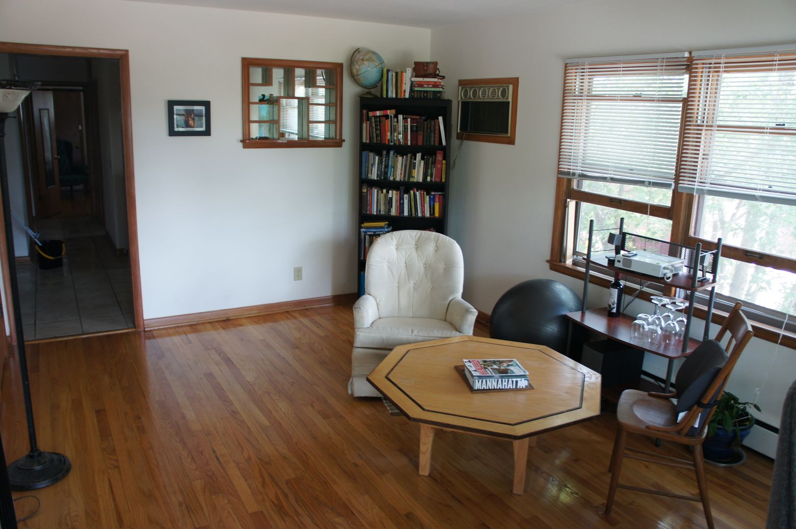 Hardwood floors in living room and bedroom