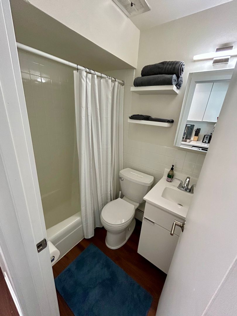 -Bathroom includes hair dryer, towels, bath matts, shower curtain, soap, and all cleaners.