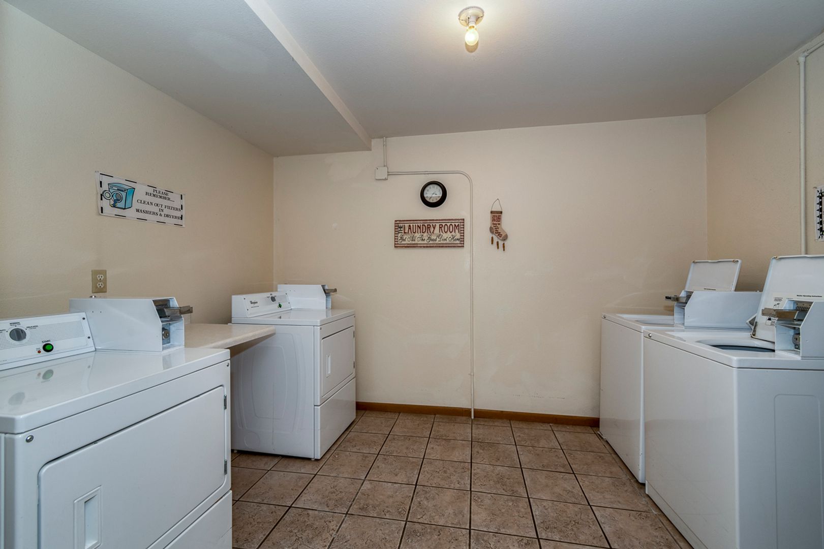 Coin operated laundry machines on each floor